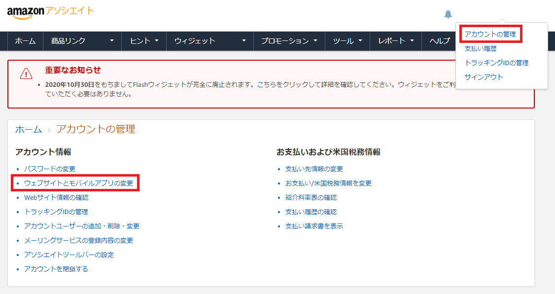 Amazonアソシエイトへのサイト追加手順をウェブ検索すると、こちらの方法がいまだに検索ヒットしますが、これは最新の手順ではありません。